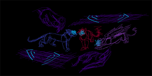 | The Eclipse passed quietly; a day when the moons block out their own shadows and bathe the world in red-light. It was quietly observed, a sombre feeling felt by onlookers, as the reminder of Rekura's Curse stretched across the lands. For Slayers and Executioners, it was a day spent within the safety of the Border. For others, it was just another day - except, when it was anything but. For those who tempted fate and brought life into the world on this day, they found their young born already marked by the Curse. Black symbols etched on their youngling's body, with an eerie violet glow lighting up the edges. They were born with the Marks, and the Elemental Mutations that haunt all born under the Eclipse. The cubs remained with their Mothers for a short time, before the Marks on their body called them away - and they vanished from one moment to the next. - The Whispers were taken to a world far beyond and removed from the one they were born in. A world that was a withered shell of long-gone life, where not even parasites had found a way to survive. It was a death sentence; a world grave that welcomed them with silence. But death was not to be their fate. Their Marks burned and the IriKan within them reached outward, screaming at the Curse, and latching onto life. They broke through their limits and used their energies to protect their charges - becoming metaphysical armour on the Whispers they were bound to. So long as they endured, so too would the Whisper. As the Whispers took another breath, and gained another chance to thrive, the world came to life with a shattering scream. Where empty land was stretched now burning magic-marks were alight with energy, and phantasms of memory reared up from their long sleep. The world was not alive. It had not been reborn or saved from its death, but something had been awakened from the depths of time - and now it roamed the world in an endless loop of repeated moments. Ghostly spectres moved through days long-past, living through the memory of their lives as if they had never died. They did not react to the Whispers, and the Whispers could not interact with them. They were memories, events, and beings that had already happened. Who they were was unclear; hazy and intangible their very identities seemed striked out by time. Names were spoken but unheard, a static build-up of sound in place of names. As if something had gone over the saved memories and blotted them out. Some lived through peaceful existence - raising their young, laughing and playing with friends. Others battled against a growing unease, rumours of a war across worlds. They had to prepare, they couldn't just sit idle and hope the threat faded off. No, no. The threat was contained, it wouldn't reach them - "Kezarri," one memory laughed, "Kezarri," one memory gasped as it faltered and died. "We're safe here," a memory smiled at the intangible shadow of it's offspring. "Too late," another cried, "It's too late now." - Through the magic of their IriKan they were able to live without access to food or water by absorbing the energies of the memories. Their IriKans would passively absorb the energy, and that energy would sustain the Whisper. The Whispers were taught and raised by both their IriKans and the memories that roamed the world. Some grew attached to particular memories; perhaps viewing them as "family", while others were able to remember that the phantasms were not alive - not anymore. They were the only ones alive in this world. Even though it was seemingly filled with life, memory was never able to be more than what it was - memory. The Whispers remained on this hollowed husk of world for what would amount to 3 years time for them, but would only have been a week in the time of their birth world. They were finally freed from the hold of the memory world when the magic-marks of the world went silent once more. When the memories faded, the world fell dark, and the WoRs woke up in the place they were taken from. |